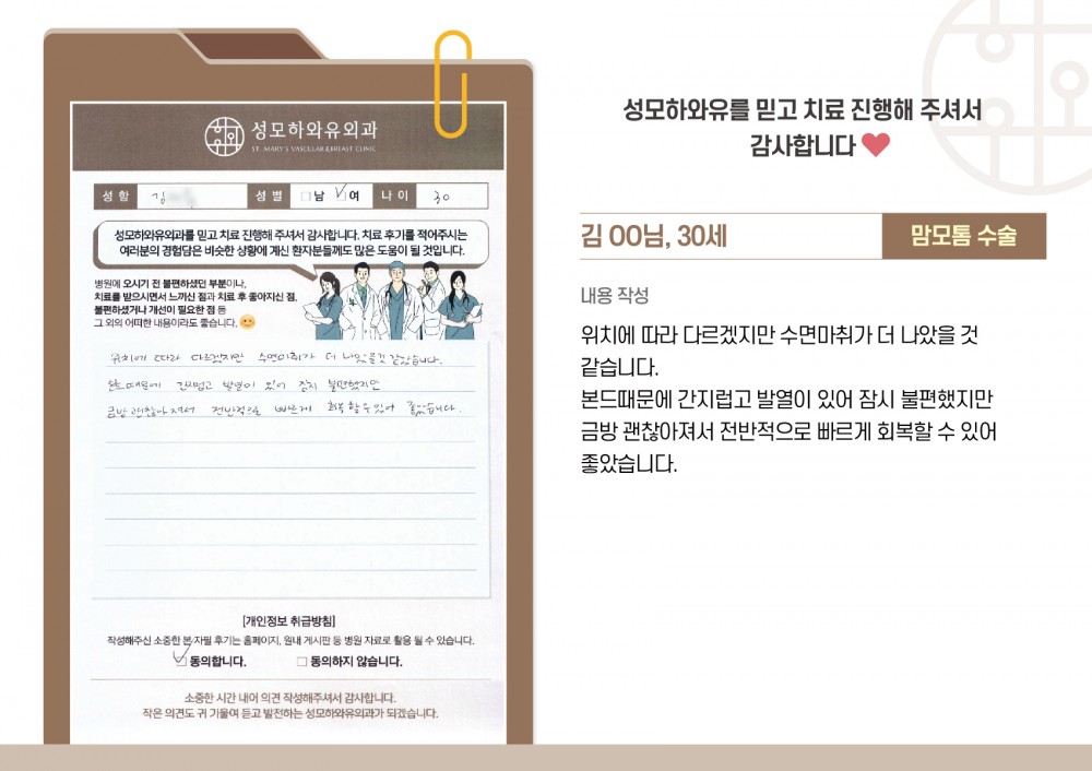 성모하와유외과를 믿고 치료 진행해 주셔서 감사합니다.