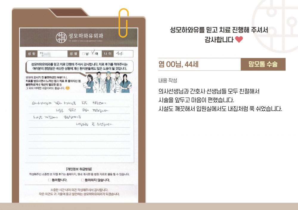 성모하와유외과를 믿고 치료 진행해 주셔서 감사합니다.