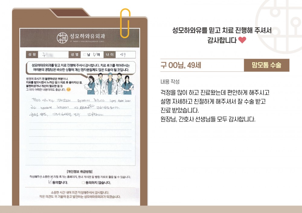 성모하와유외과를 믿고 치료 진행해 주셔서 감사합니다.